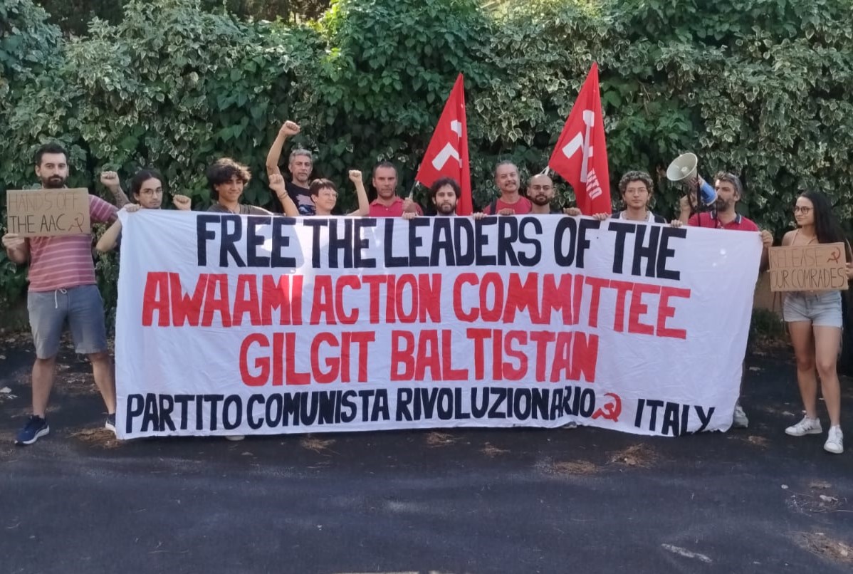 پاکستانی سفارت خانے کے سامنے روم میں انقلابی کمیونسٹ پارٹی (PCR) کے کامریڈز نے ڈے آف ایکشن کے موقع پر ایک مظاہرہ منظم کیا۔ ہم نے اپنے کامریڈز کی آزادی، سرمایہ داری اور سامراج کے خلاف زور دار نعرے بلند کیے۔