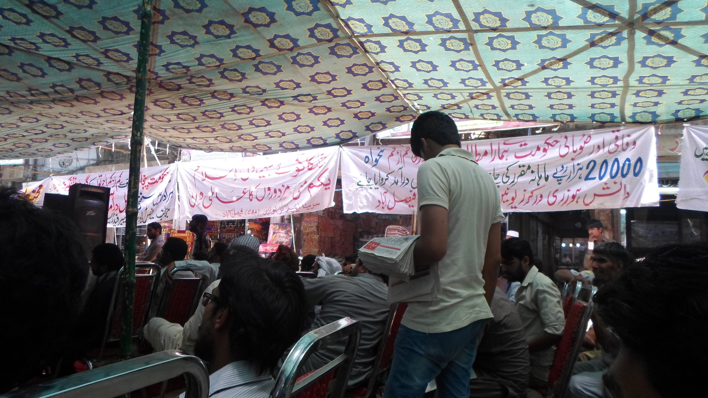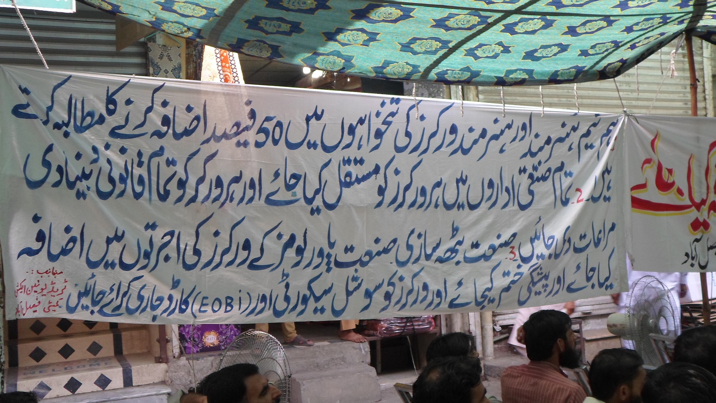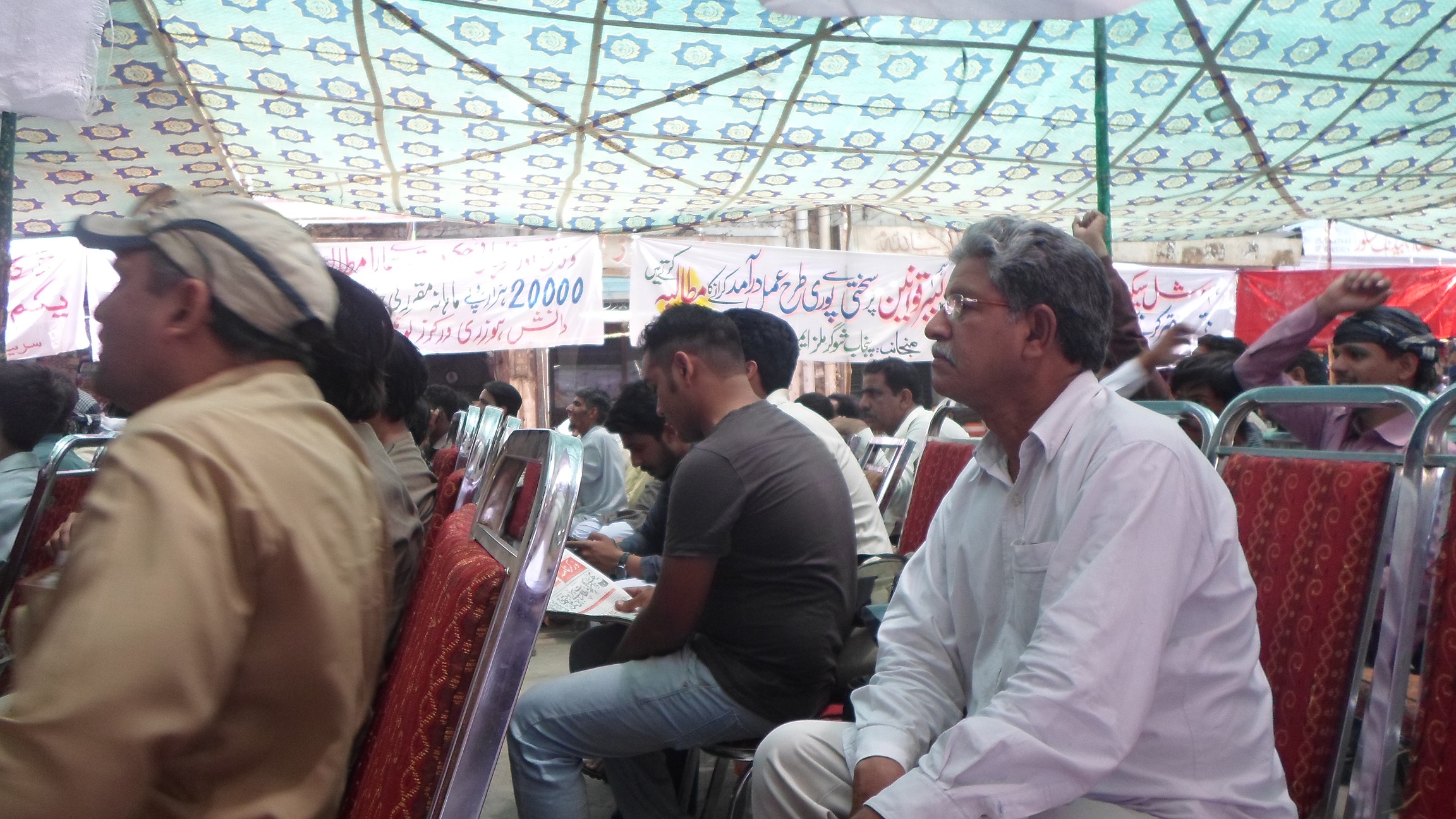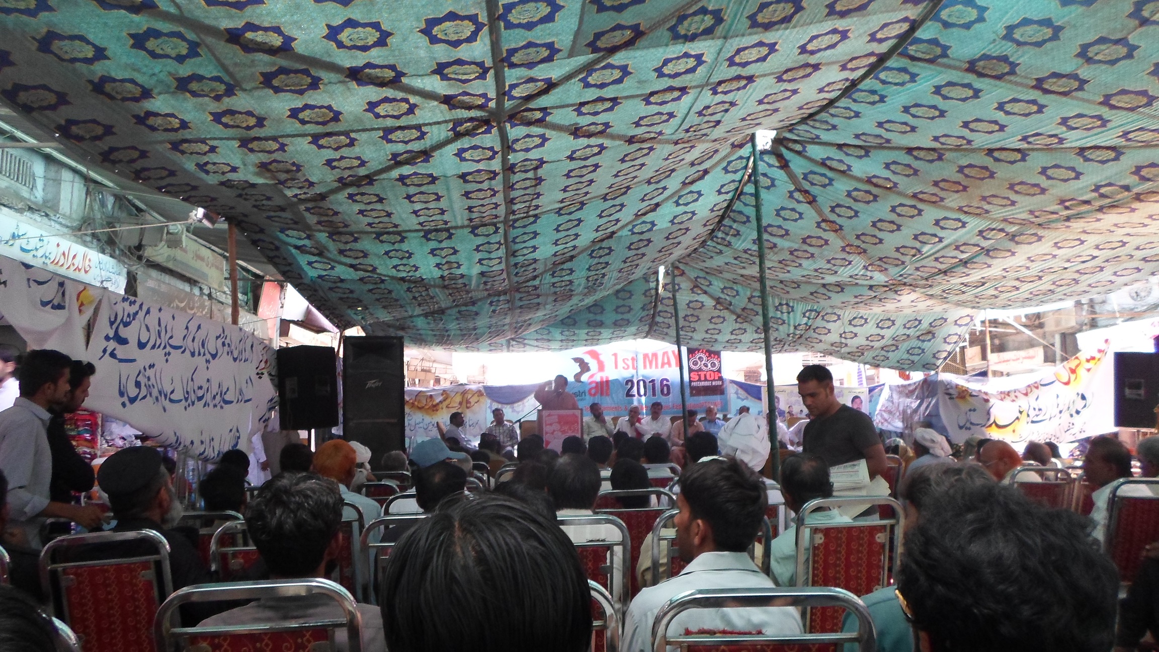 یکم مئی بروز اتوار صبح نو بجے سے ہی مزدور ٹولیوں کی شکل میں ضلع کچہری چوک میں جمع ہونا شروع ہو گئے انہوں نے بینررز اور پلے کارڈ اٹھا رکھے تھے اور نعرے بازی کرتے ہوئے شگاگو کے شہیدوں کے کو سرخ سلام پیش کر رہے تھے۔ ان کا تعلق پاور لومز، بھٹہ مزدوراور ٹیکسٹائل ورکرز کی مختلف یونینز سے تھا۔