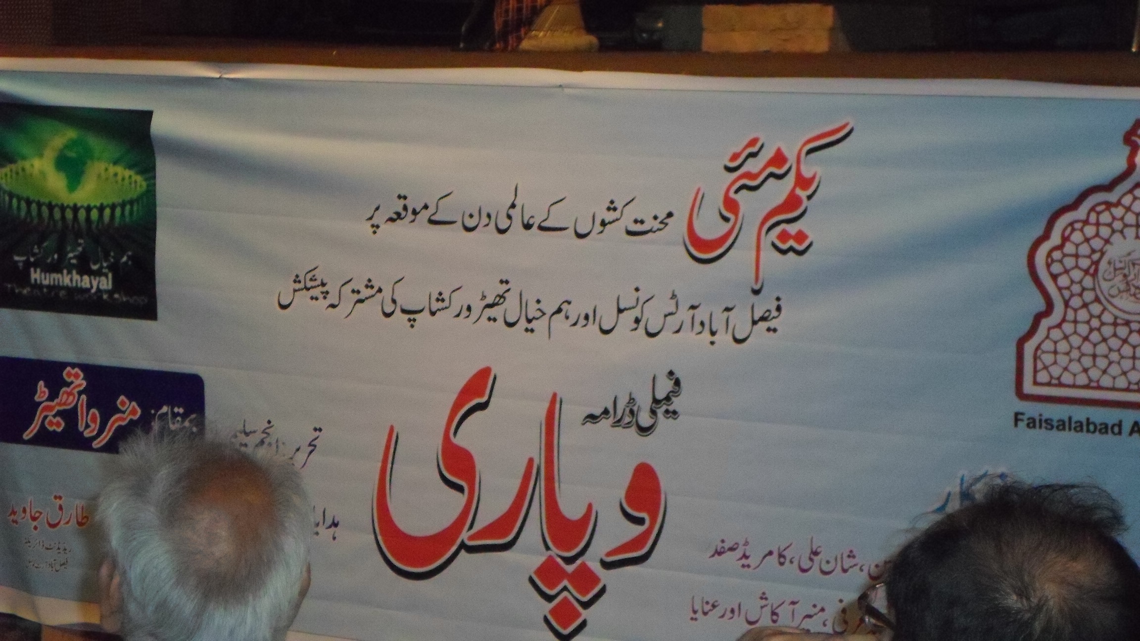 شام کے وقت مزدوروں کے عالمی دن کے حوالے سے ہم خیال تھیٹر اور فیصل آباد آرٹ کونسل کے اشتراک سے منروا تھیٹر میں ایک ڈرامہ پیش کیا گیا۔ جس میں تمام کامریڈز نے شرکت کی۔ کامریڈ صفدر نے اس ڈرامہ میں اداکاری بھی کی۔ ڈرامہ دیکھنے کے لیے مرد و خواتین کی بڑی تعداد نے شرکت کی اور ڈرامہ کے تمام اداکاروں کو خوب داد دی۔ کامریڈز نے ڈرامہ کے دوران ورکر نامہ فروخت کیا۔