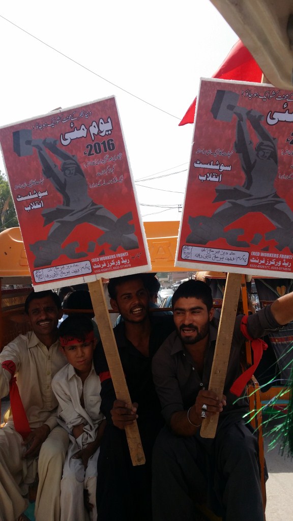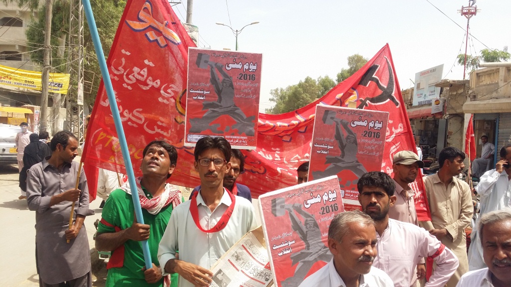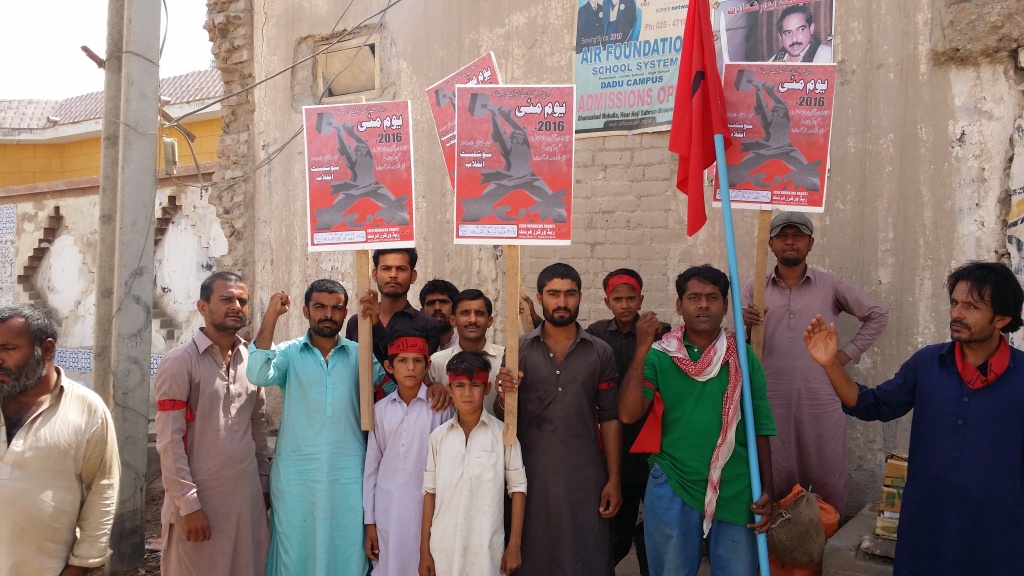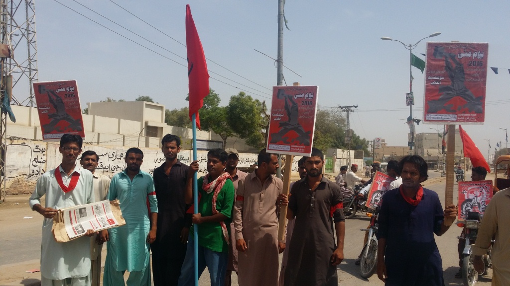 یوم مئی پر دادو شہر میں شکاگو کے شہید مزدوروں کی جدوجہد کو خراج تحسین پیش کرنے کی لئے ریلی اور جلسہ کا انعقاد کیا گیا۔ ریلی کے لئے شہر اور گرد ونواح کے مزدور اپنی اپنی ٹریڈ یونینز کے ہمراہ اورمختلف مزدور تنظیمیں ہائی ویز لیبر ہال میں اکٹھی ہوئیں جن میں ہائی ویز ورکس اینڈ سروسز ایمپلائیز یونین، آل پاکستان پیرا میڈیکل اسٹاف ایسوسی ایشن، آل پاکستان لوکل گورنمنٹ ورکس فیڈریشن، میونسپل ایمپلائیز یونین، پرائمری ٹیچرز ایسوسی ایشن، ایپکا، رکشہ یونین، پی۔ٹی۔یو۔ڈی۔سی اور ریڈ ورکرز فرنٹ(RWF) کے کارکن شامل تھے۔ ریلی ہائی ویز لیبر ہال سے پرجوش نعروں کے ساتھ شروع ہوئی۔ ریلی کے شرکاء شکاگو کے شہید مزدوروں کو سرخ سلام، مزدور مزدور بھائی بھائی، آزادی آزادی بیروزگاری سے آزادی، لال سلام لال سلام مزدورو تم کو لال سلام ، لڑیں گے جیتیں گے؛ کے نعرے لگا رہے تھے۔