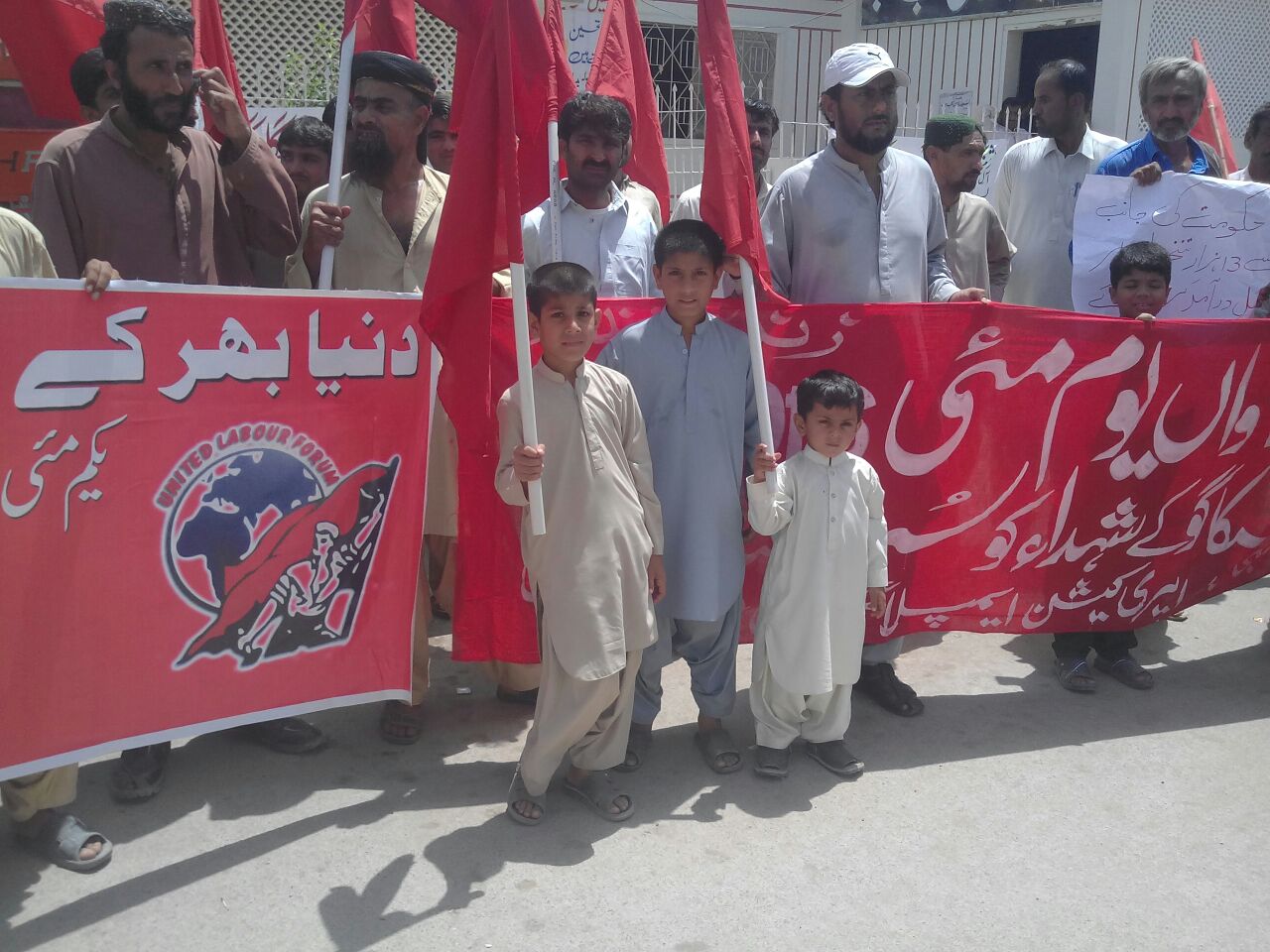 مظاہرین سے یونائیٹد لیبر فورم کے مرکزی صدر کامریڈ اللہ ورایو لاسی ،ریڈ ورکرز فرنٹ کے تصور قیصرانی، حافظ رسول بخش، فقیر محمد، اکبر عزیز، کامریڈ رشید، حاجی فیض محمد، سردار کھوسہ، امیر بخش، محمد علی، ولی شاہ، غلام محمد کھوسہ اور دیگر نے خطاب کیا۔ مقررین نے محنت کش طبقے کے اتحاد پر زور دیتے ہوئے کہا کہ محنت کشوں کے مابین مذہبی، لسانی اور علاقائی نفاق حکمرانوں کی دین ہے ۔ آج پاکستان میں لیبر لاز فائیلوں تک محدود ہیں۔ ان پر عمل درآمد ضروری تصور نہیں کیا جاتا۔ صرف حب میں کئی ایسی کمپنیاں موجود ہیں جن میں کم از کم تنخواہ پر عمل کرنے کی بھی کوشش نہیں کی جاتی۔ 1886ء میں ایسے ہی مسائل کے خلاف محنت کشوں نے قربانیاں دے کر 8گھنٹے کے اوقات کار منظور کروائے تھے مگر آج بہت سارے ادارے 10 سے12 گھنٹے کام لے رہے ہیں ۔ ان سب مسائل کو حل کرنے کے لیے ہمیں متحد ہو کر پھر سے جدوجہد کرنی ہوگی۔ کامریڈ اللہ ورایو نے اپنے خطاب میں کہا کہ اس دنیا میں پیداواری عمل ہم محنت کش کرتے ہیں اور حکومت مٹھی بھر سرمایہ دار کرتے ہیں ۔ اب وقت آ گیا ہے کہ پیداوار کے ساتھ ساتھ اقتدار بھی محنت کشوں کے پاس ہو۔ اس کے لیے ہمیں سوشلسٹ انقلاب برپا کرنا ہوگا ۔ تصور قیصرانی نے اپنے خطاب میں کہا کہ 1886ء کے محنت کشوں کا خون ہم سے سوال کر رہا ہے کہ کیا ہم نے ان کی قربانیوں سے حاصل کیا گیا 8گھنٹے کا اوکات کار محفوظ رکھا ہے؟ کیا ہمارے بچے پیٹ بھر کے کھانا کھاتے ہیں ؟ کیا ہم اتفاق و اتحاد سے رہتے ہیں؟ اگر ہمارا جواب نفی میں ہے تو پھر ان کا خون ہم سے تقاضہ کر رہا ہے کہ ہم ان کی جدوجہد کو آگے بڑھاتے ہوئے ان کا خواب پورا کریں اور اس دنیا پر محنت کشوں کی حکومت قائم کریں ۔ ایک سوشلسٹ سماج کی بنیاد رکھیں ۔ اس کے لیے ہم ہر قسم کی قربانی دینے کے لیے تیار ہیں ۔